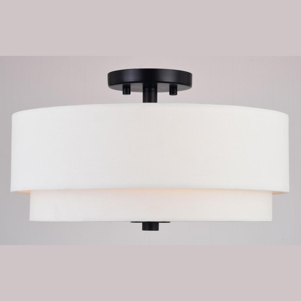 Indulge your Mid-century modern dreams with this timeless collection. The Burnaby collection brings an undeniably updated feel to your vintage styling with its interplay of crisp fabric shade and contrasting metal finish. This flush mount ceiling light is perfect for a low ceiling foyer, living room, hallway, entryway, or bedroom. Its soft Mid-century modern style is enhanced by a white linen drum shade. A white acrylic diffuser hides the bulbs and softens the light distribution.