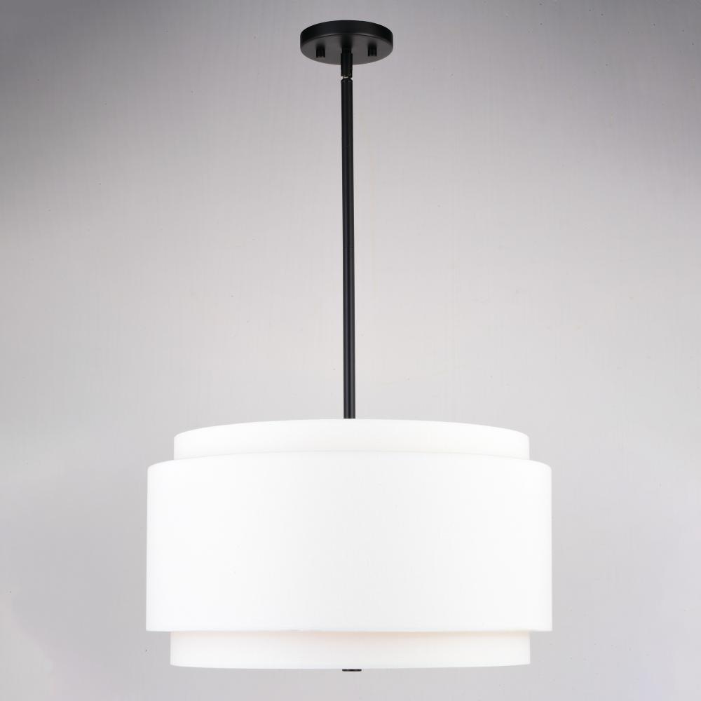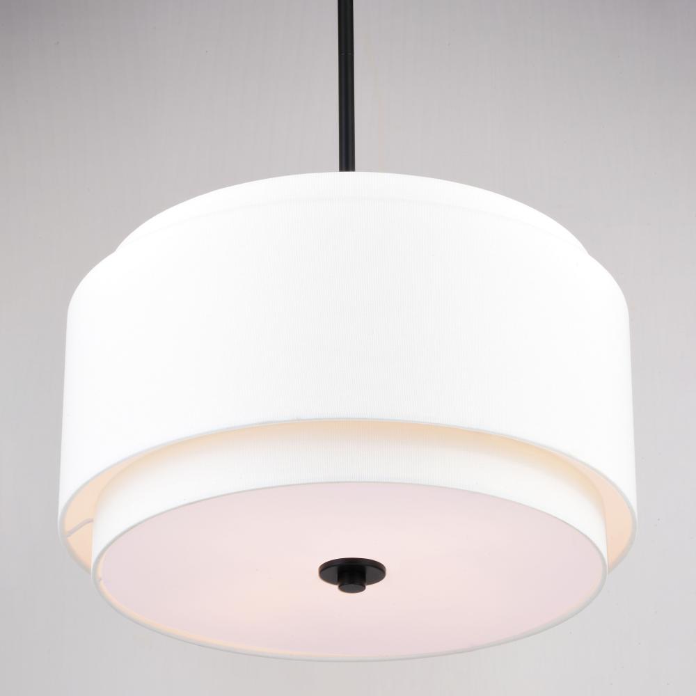 Indulge your mid-century modern dreams with this timeless indoor lighting collection. The Burnaby collection harkens to the days of Mad Men for a MCM feel to your interiors with its interplay of white and black colorway. Its soft mid-century modern style is enhanced by a round white linen double drum shade. The acrylic diffuser hides the bulbs and creates even light distribution. This pendant is adjustable with included downrods and is perfect for your kitchen, dining room, living room, foyer, or bedroom.