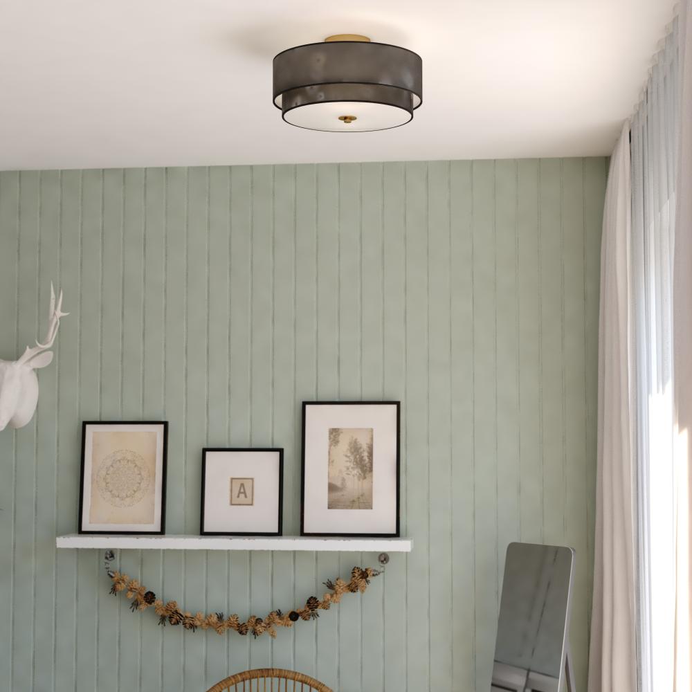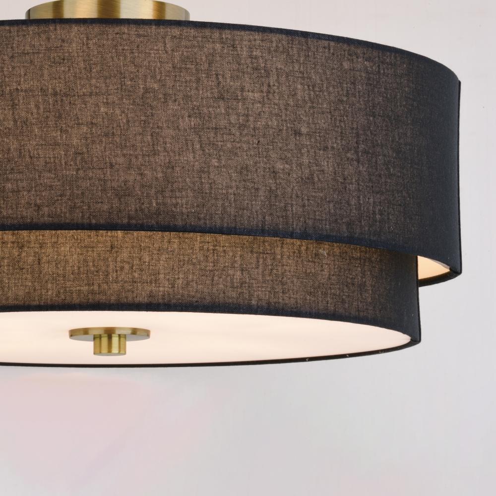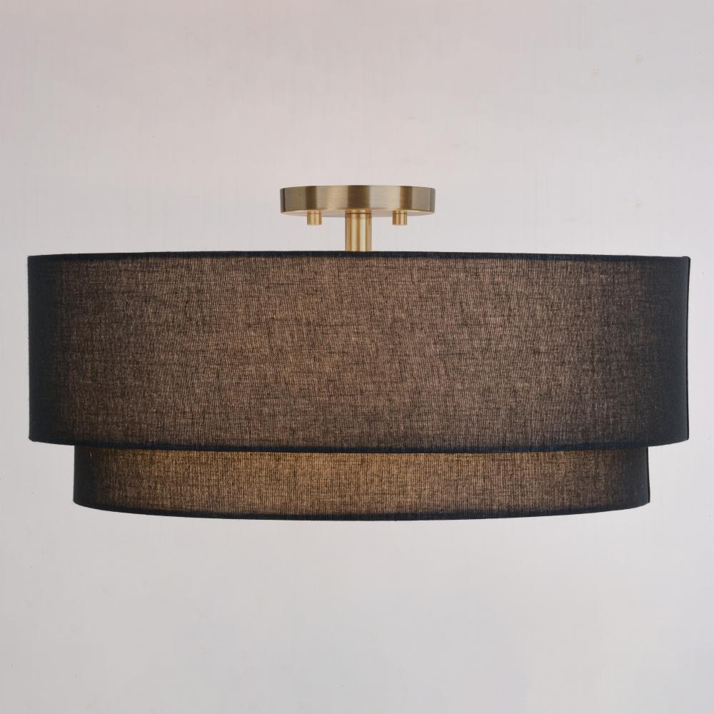 Indulge your mid-century modern dreams with this timeless collection. The Burnaby collection harkens to the days of Mad Men, inch yet brings an undeniably contemporary feel to your transitional or modern interiors with its interplay of linen and brass. This semi-flush mount ceiling light is perfect for a low ceiling foyer, living room, hallway, entryway, or bedroom. Its soft mid-century modern style is enhanced by a black linen drum shade. An acrylic diffuser hides the bulbs and creates even light distribution.