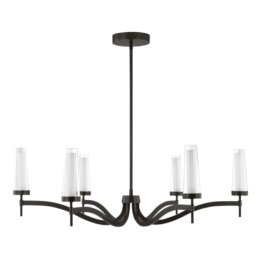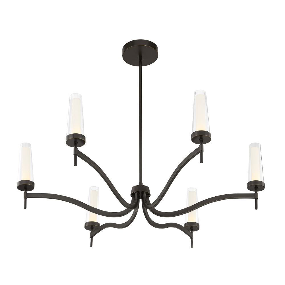 The Savoy House Butler 6-light chandelier is an intriguing update to traditional lighting style. Sweeping arms and double-glass shades bring a graceful, candle-inspired look into the modern era. The integrated LED light sources bring a bright glow while the Mediterranean Bronze finish adds gorgeous radiance. Butler is 40" in width and has an adjustable height ranging from 18" to 60". Comes with four 12" downrods and one 6" downrod.