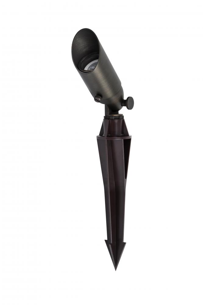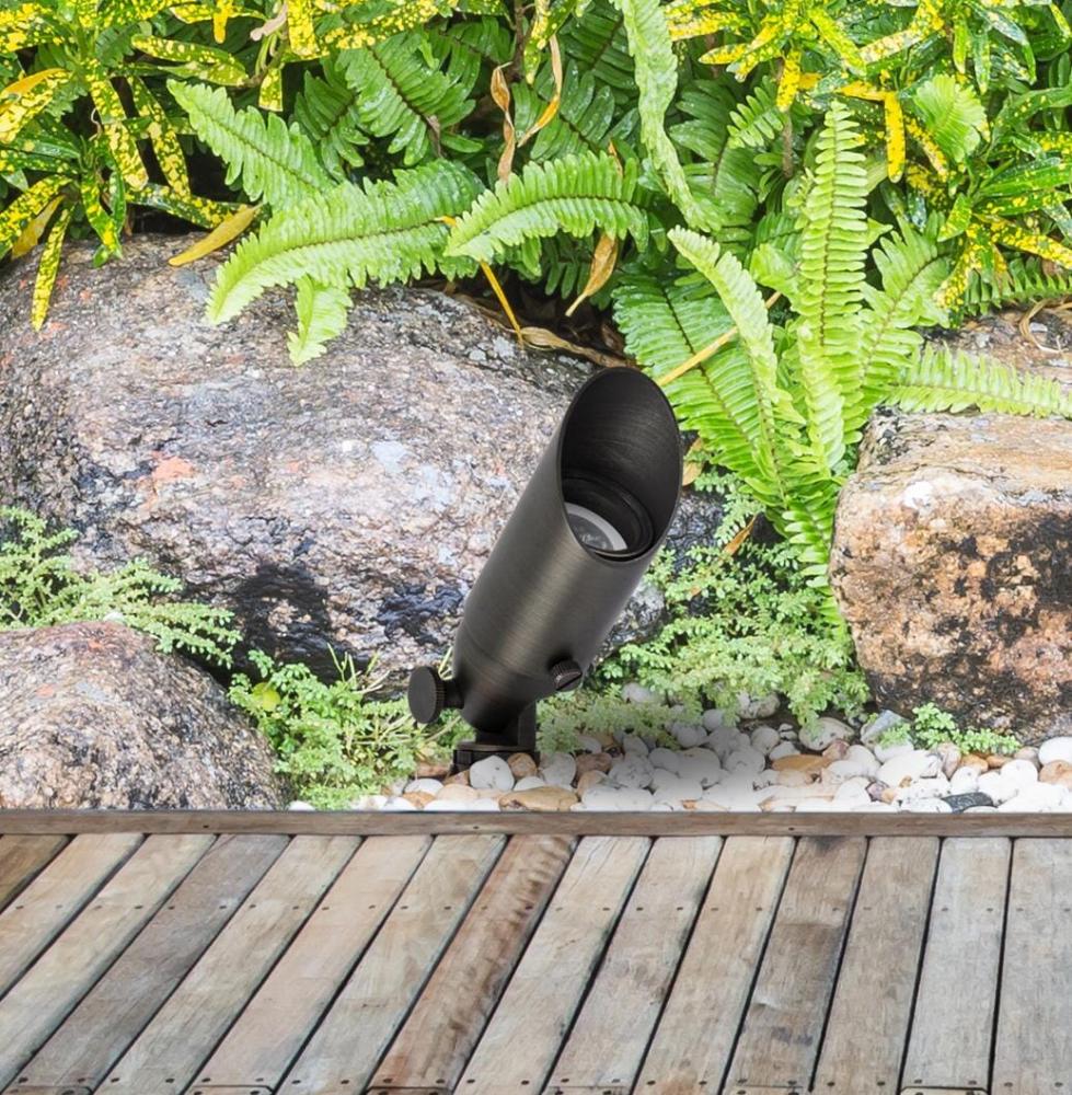 Illuminate your outdoor space with our premium 12-volt cast brass spotlights, designed to bring both durability and elegance to your landscape. Featuring a sleek dark bronze finish, these spotlights seamlessly complement any setting while delivering focused, powerful illumination through a convex glass lens that magnifies the light. Equipped with an MR16 halogen base (compatible with up to 35-watt bulbs) and a sturdy 8-inch plastic mounting stake, installation is quick and secure. with 3 feet of electric wire included, you have the flexibility to perfectly position your lighting for maximum effect. Elevate your outdoor aesthetics with these reliable, high-performance spotlights that are built to withstand the elements and shine brightly for years to come.
