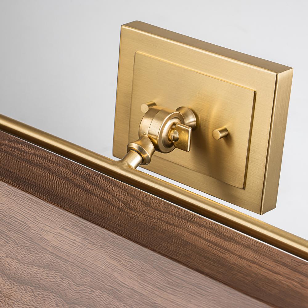 Adjustable knuckle-joint Picture Light by Lucas+McKearn in medium and large sizes. Wood and aged brass or stone and plating finishes highlight art with directional light.