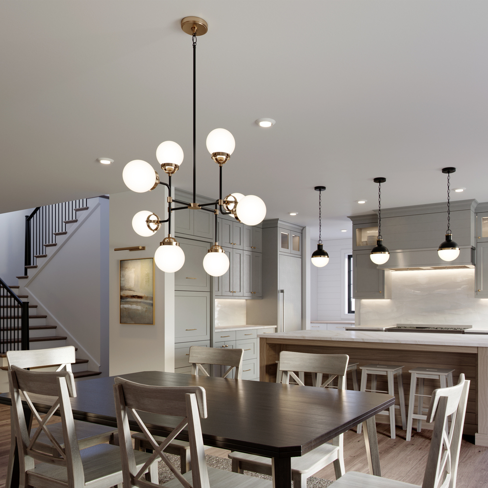 Modern, contemporary fixture will complement any dining room, kitchen, living room, family room, or foyer