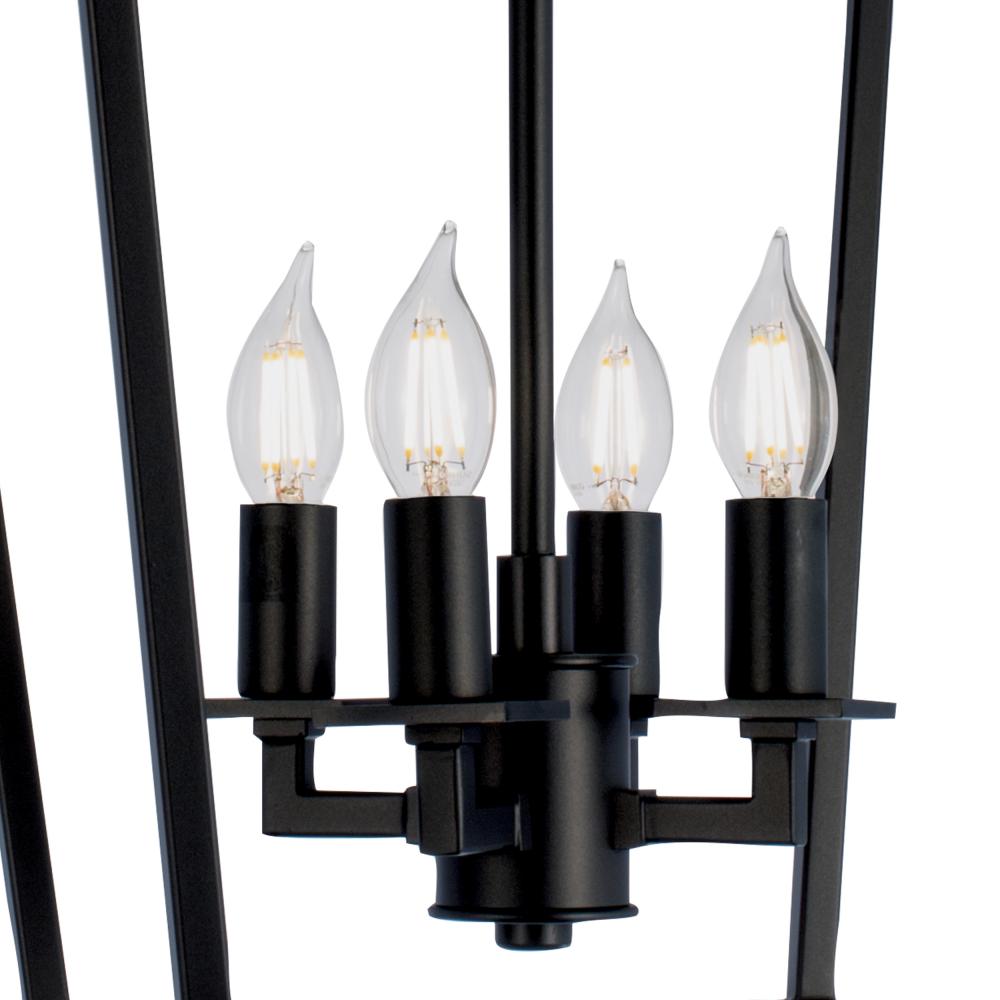 The old world charm of the Cage medium pendant shines through the fixtures finely crafted framework with four candelabra bulbs.