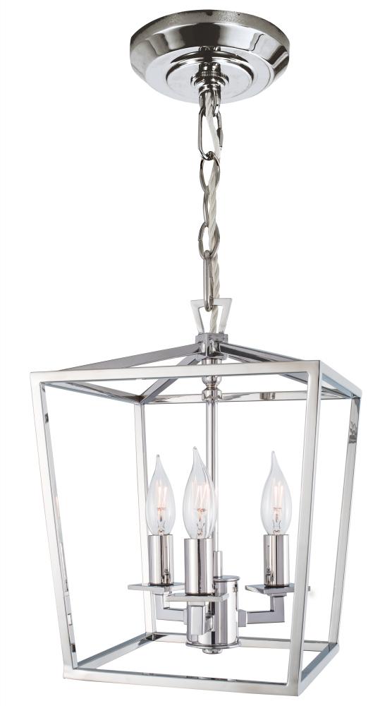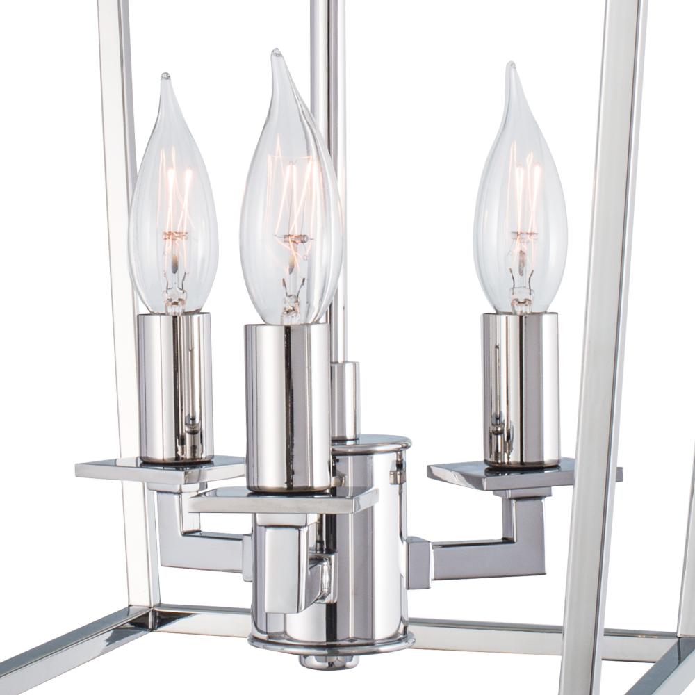 The old world charm of the Cage small pendant shines through the fixtures finely crafted framework with four candelabra bulbs.