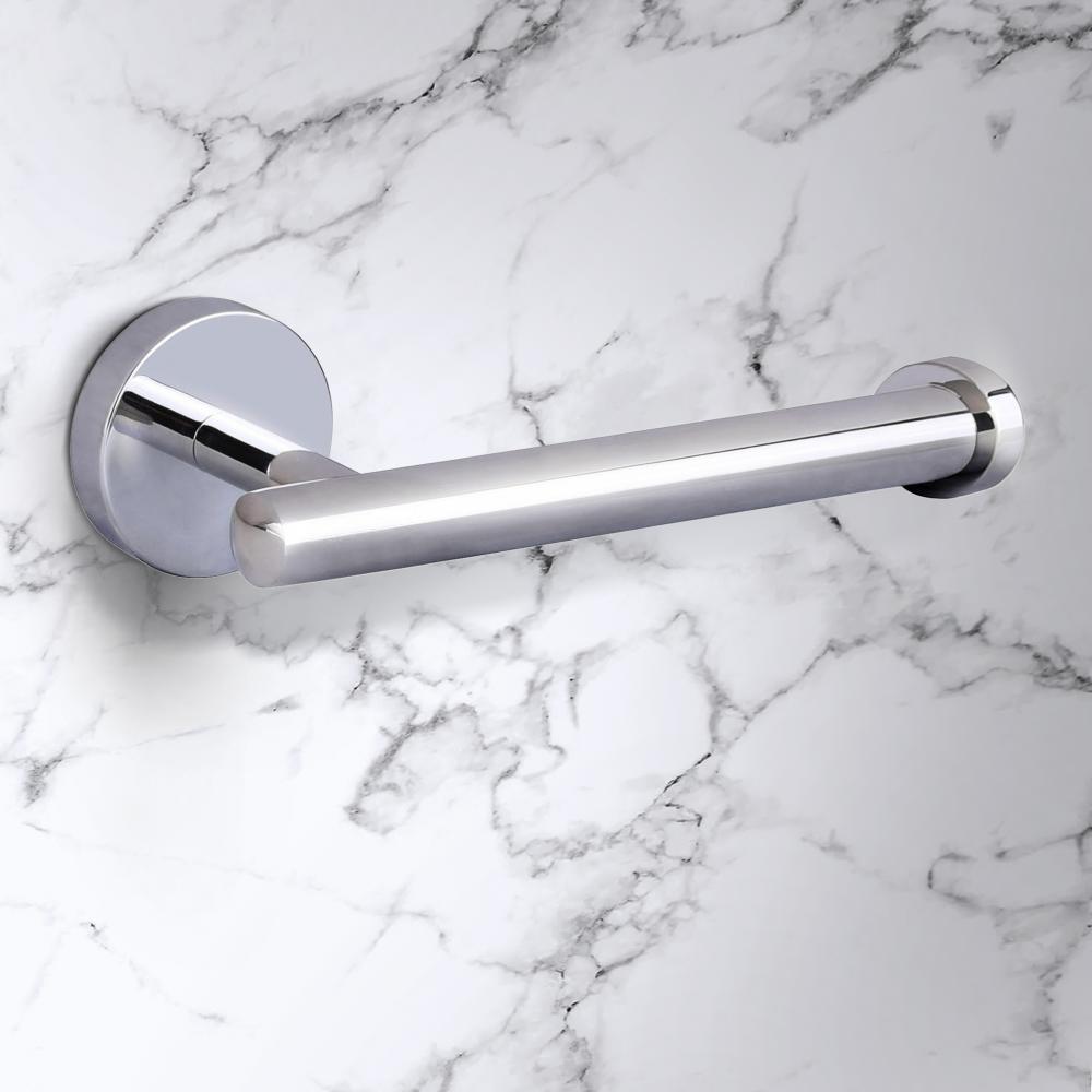 Lustrous Stainless Steel Composition: The Cain Toilet Paper Holder shines with a stainless steel finish, offering a clean, modern look that integrates smoothly with any bathroom design.