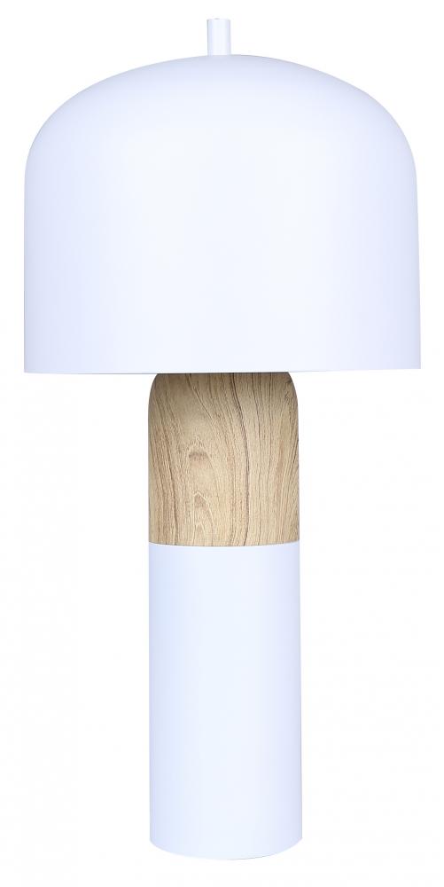 CALEB 19 in. Matte White & Faux Wood Table Lamp with Matte White Metal Shade and Line Switch