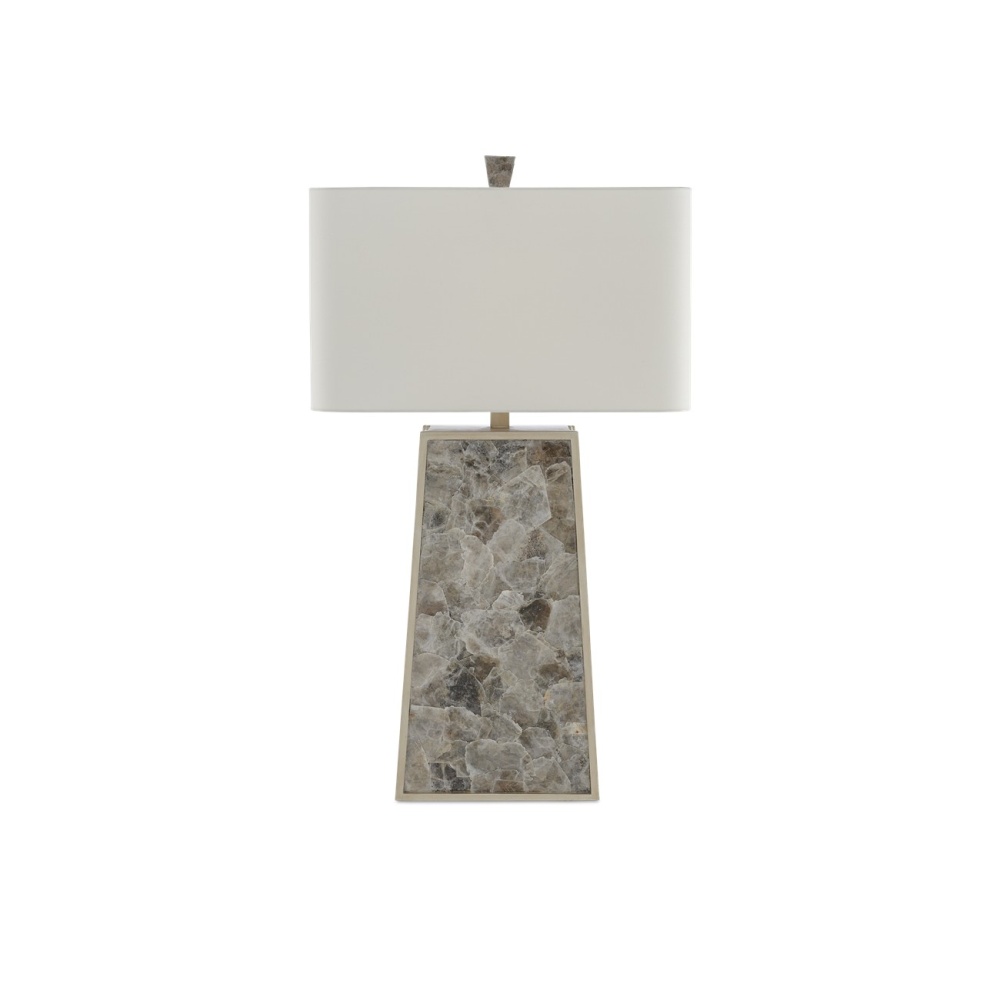Our Calloway Table Lamp is a remarkable lamp covered in mica in a light mica finish. The natural material is surrounded by a wood frame in a silver leaf finish. A mica finial fastens the off-white shantung shade to the gray lamp to serve as a crowning touch.