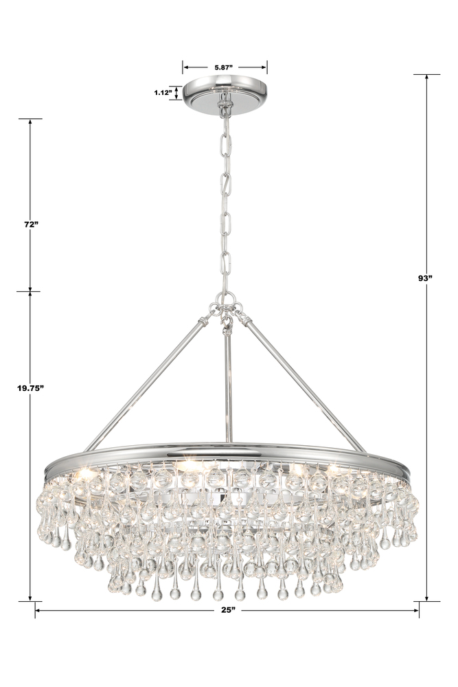Prepare to be captivated by the Calypso collection, where sparkling crystal meets the sleek and contemporary allure of Polished Chrome. This stunning line showcases a mesmerizing interplay of smoothed-shaped clear drops and balls, exuding a luxurious and sophisticated aura. The Polished Chrome finish adds a touch of modern elegance, infusing the collection with a lustrous, reflective surface that reflects light beautifully. Elevate the ambiance of your living room, dining room, or entryway with this striking combination of crystal allure and sleek Polished Chrome aesthetics.