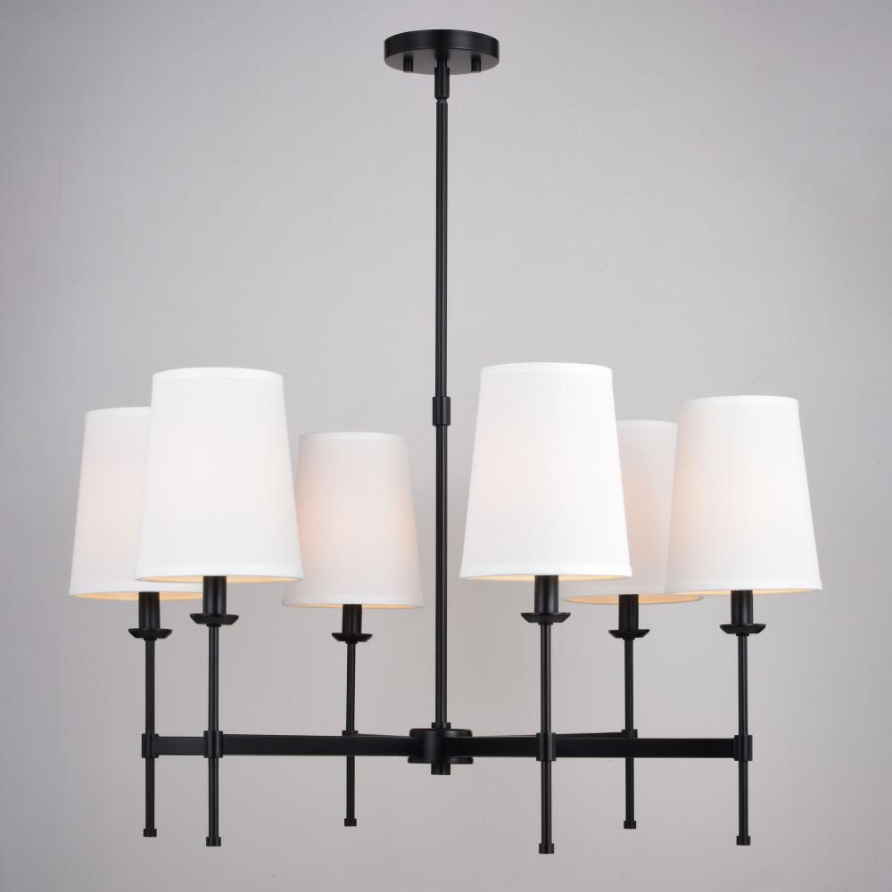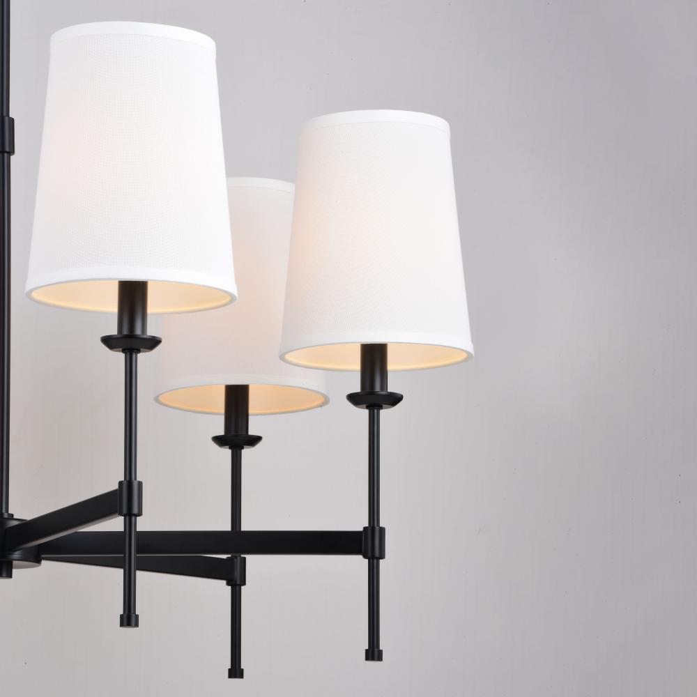 The Camden collection is a timeless take on a classic. The graceful look of the white linen fabric shades provides ambient illumination and is sure to upgrade your decor. This shaded chandelier is ideal for kitchen or dining rooms.
