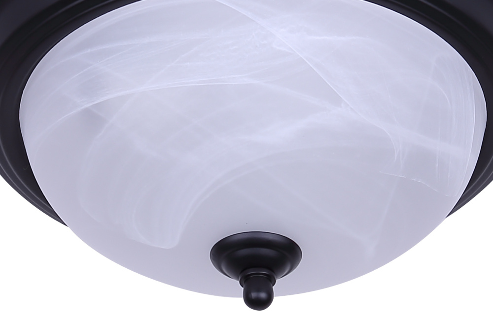 Classic Flush Mount Design: The matte black finish paired with alabaster glass creates a timeless dome fixture. Its understated style makes it easy to integrate into any room or project.