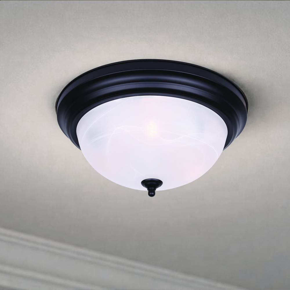 The Canarm 2-light flush mount is a builder-grade essential that delivers reliable performance and timeless style at an exceptional value. Featuring a matte black finish paired with a classic alabaster glass dome, this 11-inch ceiling light blends seamlessly into any setting, from apartments to single-family homes. Compact at just over 5 inches high, it offers bright, functional illumination with two 40W Type A bulbs, making it an ideal choice for hallways, kitchens, bedrooms, or utility spaces. Perfect for contractors, renovations, or quick upgrades, the IFM411 combines durable construction with an understated design that fits effortlessly into any project.