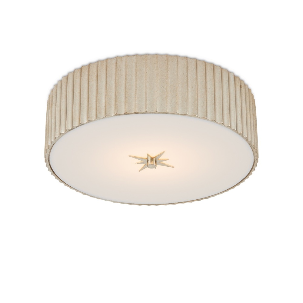 The Caravel Silver Flush Mount is a classic flush-mount design made of composite with a silver leaf finish. We've fitted the Caravel with a frosted glass diffuser, which will soften the light wafting from the integrated LED lbulbs. The delineated shape of the profile is a sophisticated design detail.