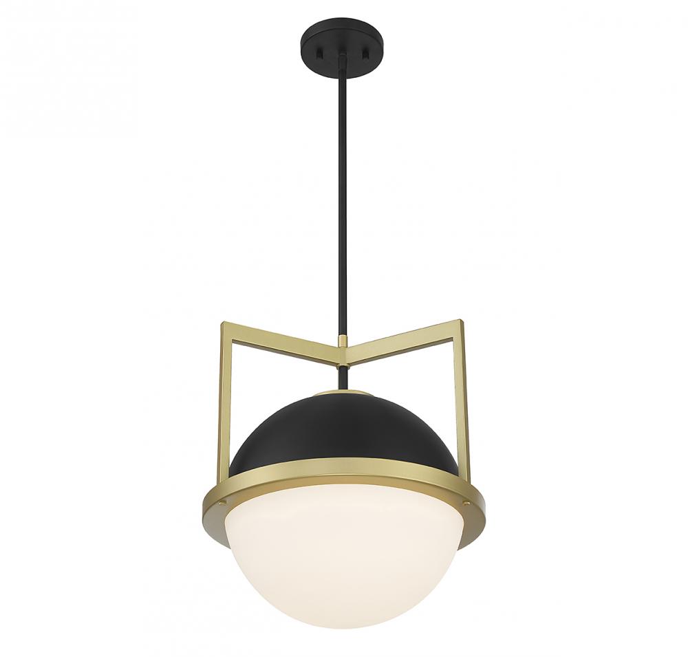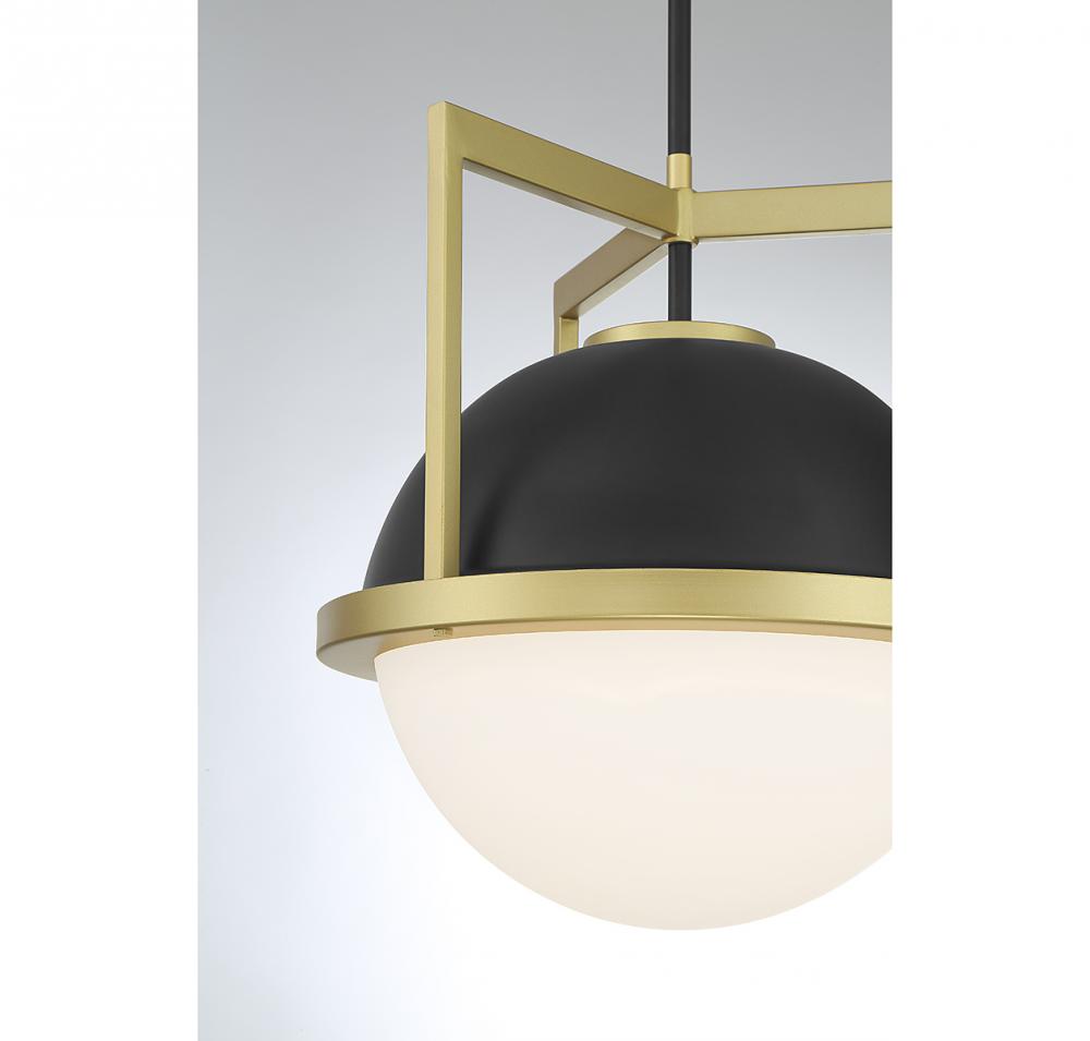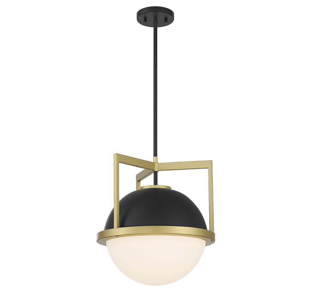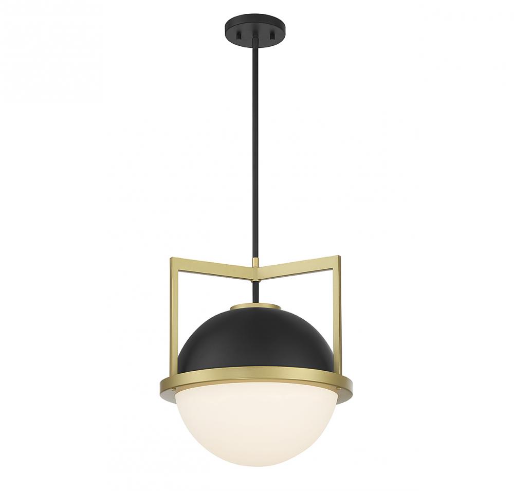 Carlysle 1-Light Pendant in Matte Black with Warm Brass Accents
