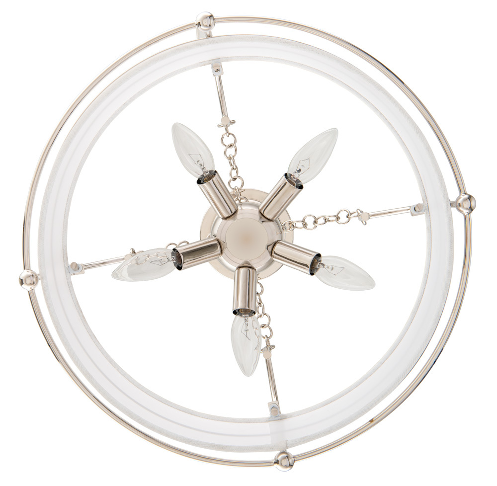 The Carson Collection features a clean linen fabric shade and Polished Nickel (PN) frame that is suspended by decorative chain links. The Polished Nickel (PN) finish contrasts and enhances the warm linen light.