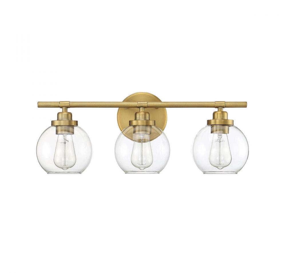 Carson 3-Light Bathroom Vanity Light in Warm Brass