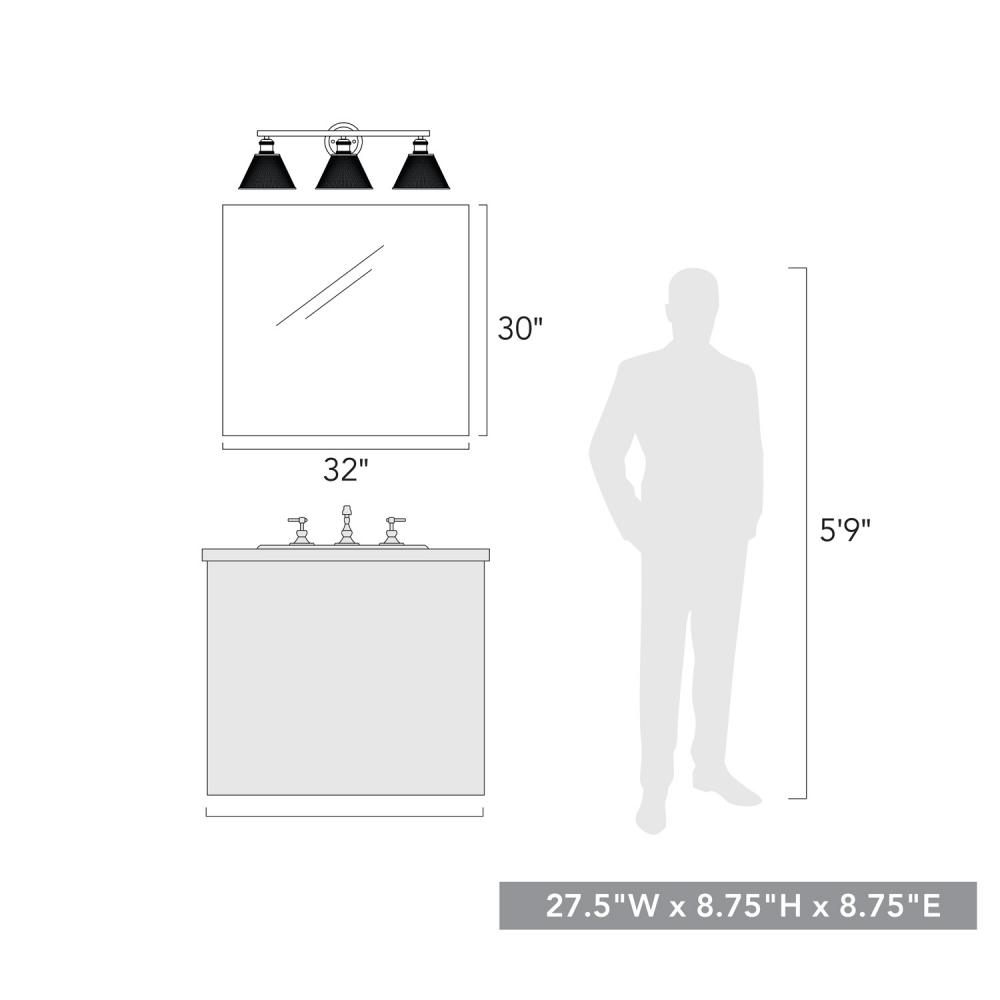 Carver 3-Light Bath Vanity in Matte Black with Mesh Shades