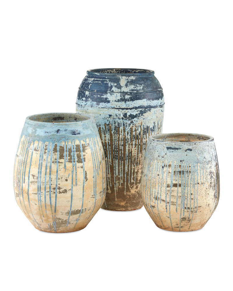 Made of terracotta with antique white and blue drip overlay, the Catania Large Antique Blue Drip Planter is a garden ornament, patio pot or interior accent that looks as if it was left to age for centuries. Whether it has a plant in it or not, it will be a vintage-inspired decorative piece of value.