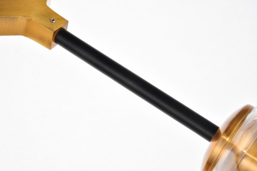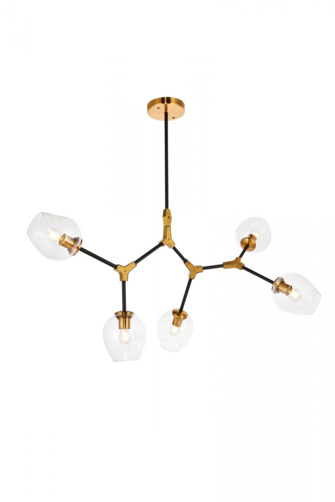 The daring Cavoli pendant lamp in a light antique brass and flat black finish is designed with 5 lights that connect at various angles, illuminating your rooms and ridding them of darkness. The winding paths end with a light encapsulated within a clear shade at each point. This contemporary blend of art and function results in this light that will shine beautifully in any space it adorns.