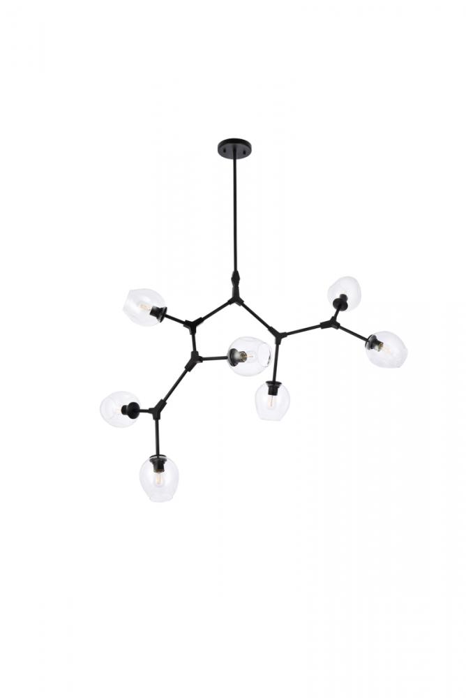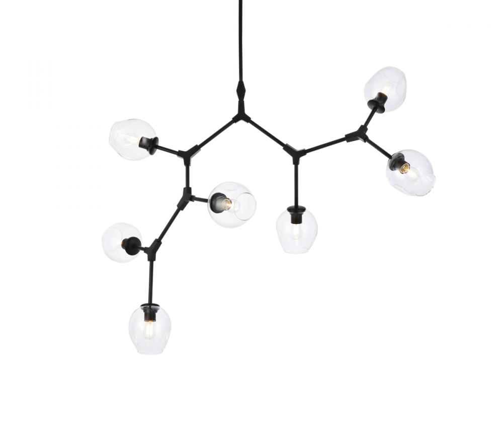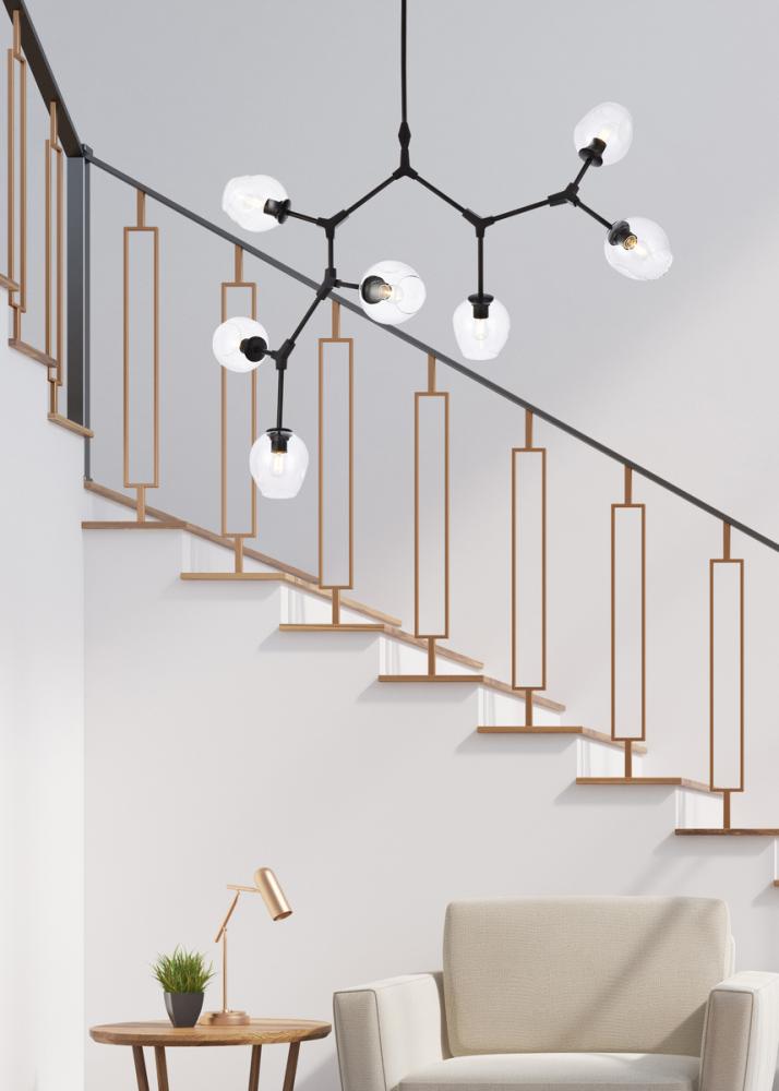 The daring Cavoli pendant lamp in a light antique brass and black finish is designed with 7 lights that connect at various angles, illuminating your rooms and ridding them of darkness. The winding paths end with a light encapsulated within a clear shade at each point. This contemporary blend of art and function results in this light that will shine beautifully in any space it adorns.
