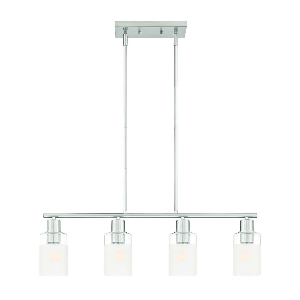 Brushed Nickel 4 Light Island with clear and etched glass is part of the Cedar Lane collection