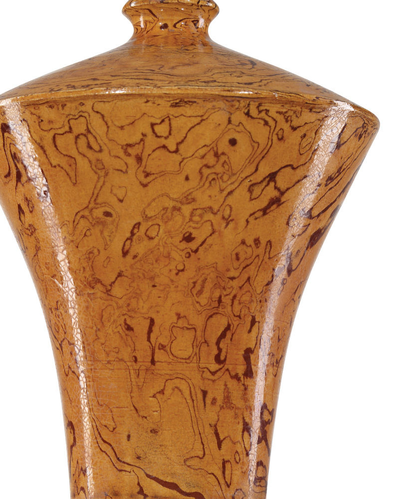 You'll want to see the Celestial Vase from every angle, as a different pattern will come into view depending upon the direction from which it is seen. Made of porcelain, the morphing patterns hold hints of black, pale green, and pale red hues. This is a hand-thrown creation with motifs that could easily represent the whole of the cosmic universe.