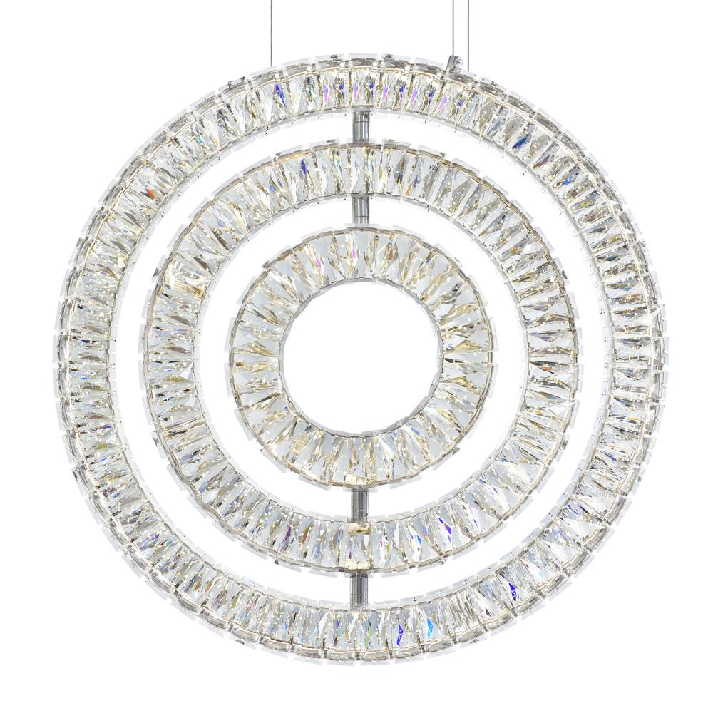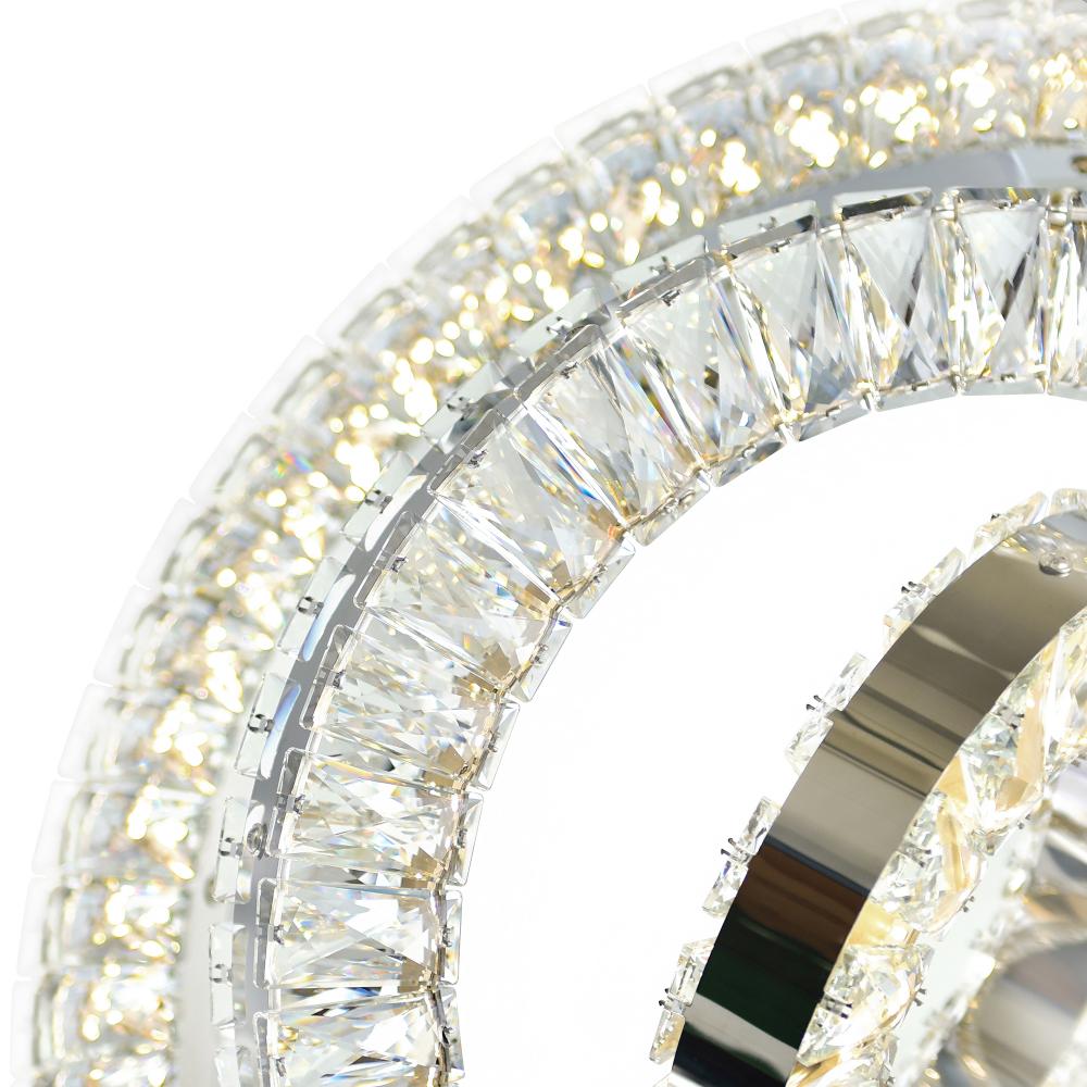 Elegant Circular Design: Showcases three crystal-lined rings suspended in a tiered arrangement for a dazzling effect