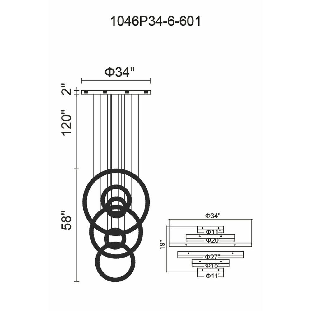 A chandelier that dares to be bold. The Celina 34" Chrome Integrated LED Chandelier transforms your space into an artful display of light and form. With its oversized profile and dramatic interlocking rings, this modern fixture delivers both function and flair. A polished chrome finish reflects the light brilliantly, making it the perfect statement piece for upscale interiors. Modern Ring Design: Interlocking LED-lit rings hang vertically, creating a sculptural effect that commands attention. Integrated LED Technology: Enjoy energy savings and consistent lighting with built-in LED components. Adjustable Hanging Height: Fully customizable drop to suit ceilings of varying heights and design needs. Reliable & Certified: BACL certified with a 3-year manufacturer's warranty against manufacturer's defects for peace of mind. Elevates Any Space: Ideal for grand foyers, modern living rooms, or open-concept staircases. Make a bold design move with the Celina Chandelierwhere sculptural elegance meets powerful LED lighting.