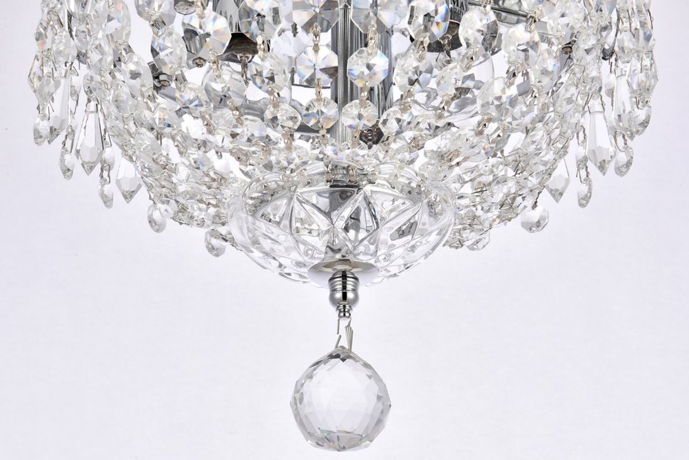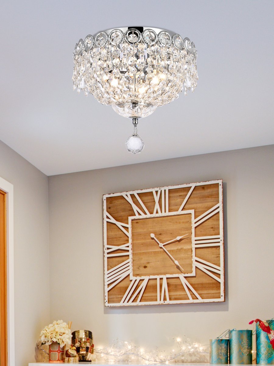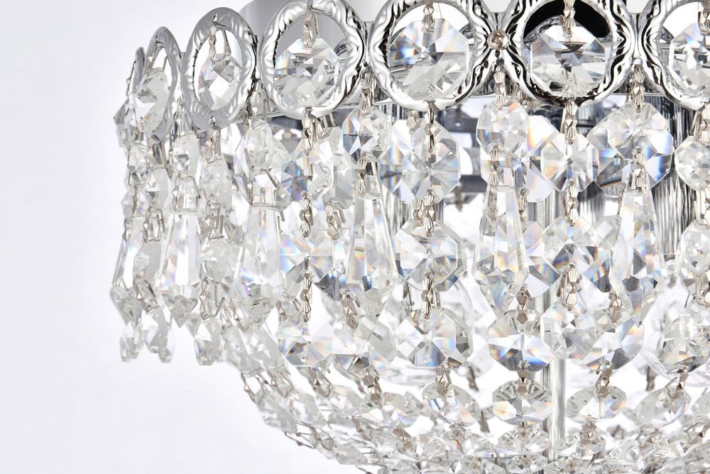 Century collection flush-mount fixtures, inspired by the classic elegance of 19th-century France, offer the versatility and adaptability to add splendor to many areas of your home. The light-refracting hemisphere designs abound in clear crystal octagons and prisms in a wide variety of trims. The candelabra bulbs give off the glowing hue of the frame, finished in gold or chrome.