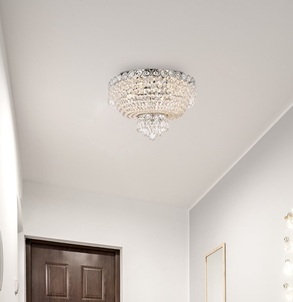 Century 4 light Chrome Flush Mount Clear Royal Cut Crystal