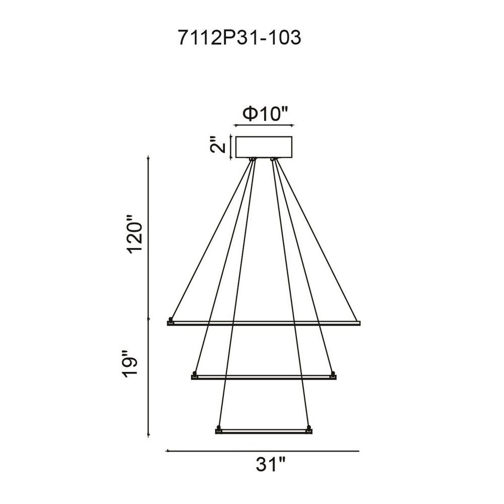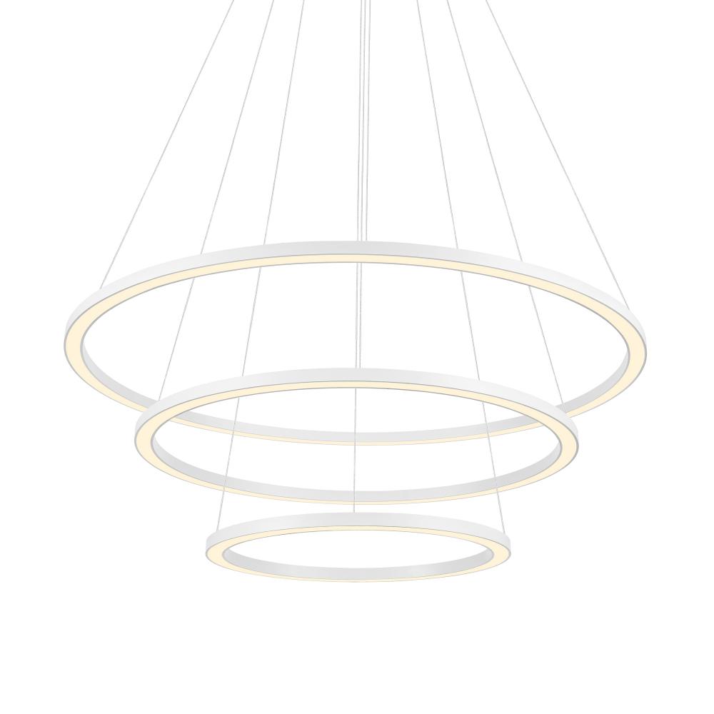 This breathtaking Chalice Trio 31'' Modern LED Chandelier with White Finish is a beautiful piece from our Chalice Collection. Featuring three concentric LED rings suspended from a clean white canopy, this fixture combines modern minimalist design with customizable lighting options. Adjust the height and angle of each ring to create a flat, wide glow or a layered cosmic effect. Ideal for living rooms, dining rooms, or foyers, it delivers soft ambient light while making a bold artistic statement. Finish: White Light Count: Integrated LED (3 Rings) Light Source: LED, No Bulb Required Adjustable Hanging Height: Yes Material: Metal and Acrylic Style: Modern / Contemporary