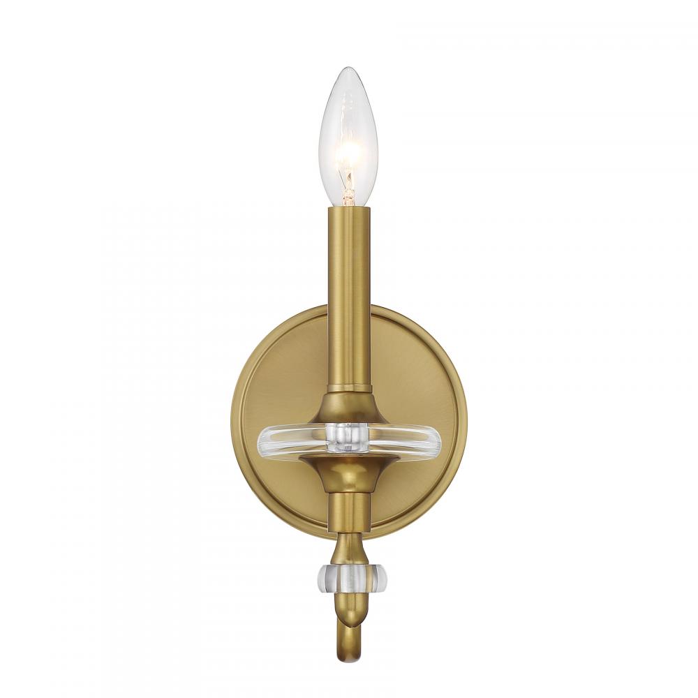 A timeless lighting look is freshened up with chic K9 crystal accents in the Savoy House Champlain 1-light sconce. The simple elegance makes it a stylish selection for adding a touch of brightness to any room and the Warm Brass finish pairs perfectly with the K9 crystal. Champlain is 9" in height, 5" in width and extends 6.75" from the wall. It uses one candelabra size bulb of up to 60 watts. Bulb not included. This sconce is damp area rated.
