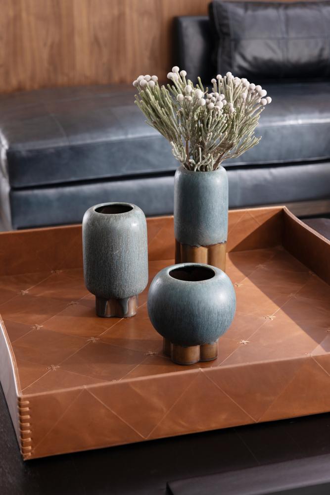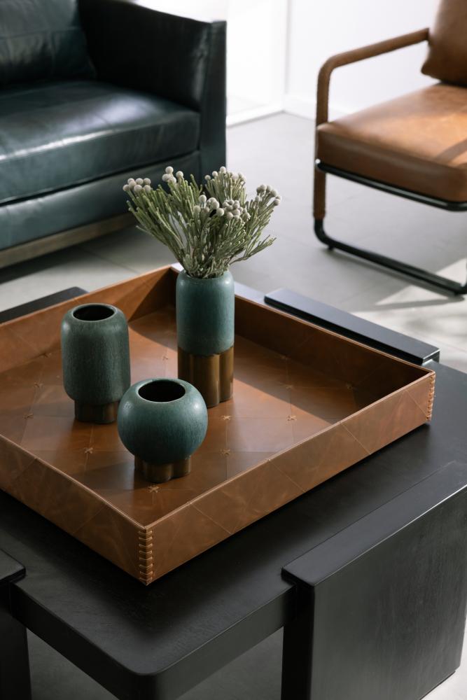 Natural stitching and patchwork inform our supersized tray of cognac leather. Cross-hatched details emphasize the elegant craftsmanship that highlight its minimal lines. Finish will vary.