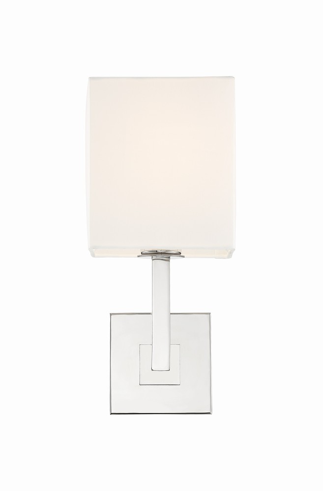 Whether illuminating a bathroom vanity, hallway or bedroom, the Chatham light is a sophisticated choice to any space in your home. The one-light fixture features a square white silk shade and a polished nickel backplate.