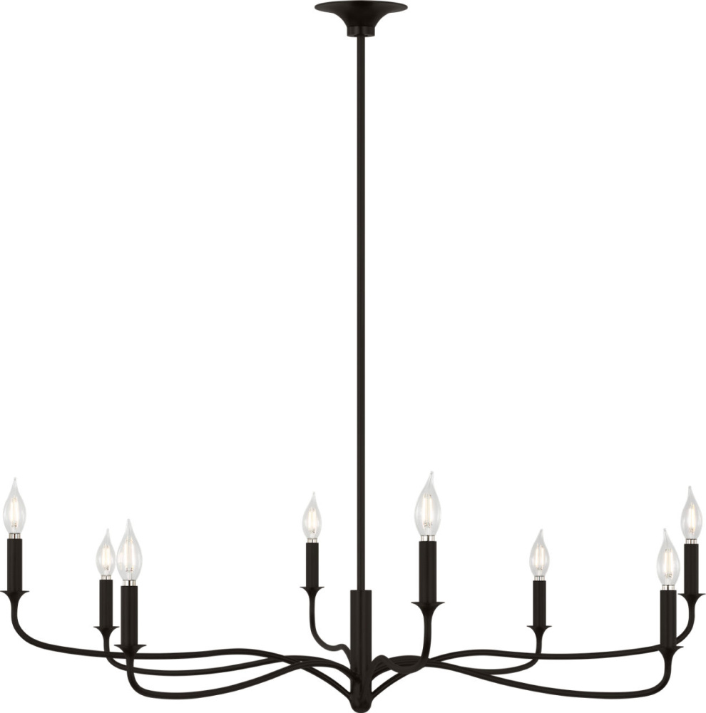 The Chatsworth 42" Chandelier by Alexa Hampton is a commanding expression of the collection’s modern traditional design. Rooted in Hampton’s signature style, Chatsworth reimagines classic forms through a modern, organic lens, blending expansive arms With gentle slopes and a soft transition from the fixture body to the ceiling canopy. This sculptural fluidity evokes a sense of movement and balance, offering a silhouette that is structured yet natural, classic yet current. Ideal for living rooms, dining rooms, great rooms, and foyers, the 42" chandelier anchors the space With quiet sophistication and timeless elegance.