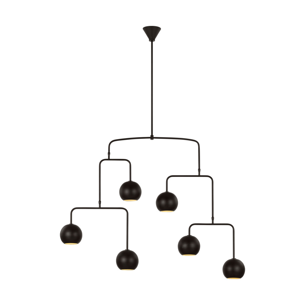 Designed by Christiane Lemieux, the Chaumont six light multi tier chandelier in aged iron is the perfect way to achieve your desired fashion or functional needs in your home. Inspired by the mobiles of Calder and classic French mid-century forms, the multi-directional shades suggest movement. This series includes 3 large chandeliers and a task sconce, all available in a dramatic Aged Iron living finish which will patina over time.