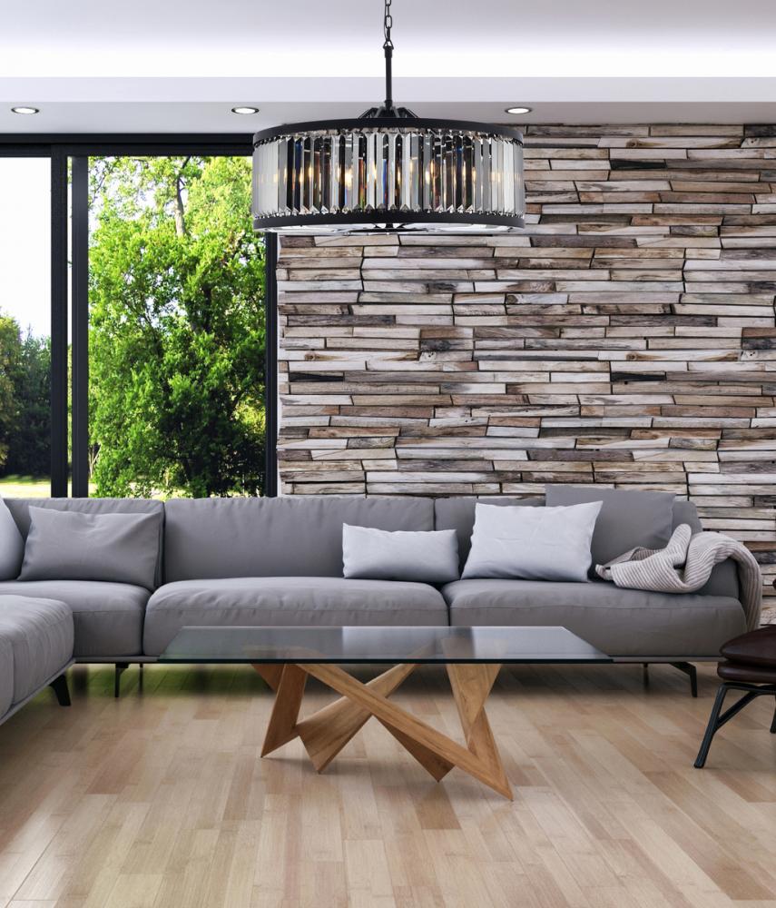 An infinity of light, caught in a circle of crystal bars in clear, golden teak, or Silver shade, the Chelsea collection will bring a shimmer of brilliance to your home. The circular steel frame in a Matte Black or polished-nickel finish lends subtle strength to this chandelier design. The Chelsea collection adds transitional grace especially to a kitchen, bedroom, or dining room.