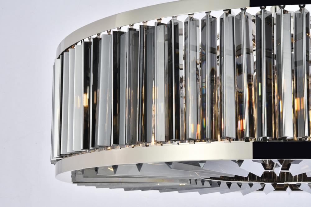 An infinity of light, caught in a circle of crystal bars in clear, golden teak, or Silver shade, the Chelsea collection will bring a shimmer of brilliance to your home. The circular steel frame in a mocha-brown or polished-nickel finish lends subtle strength to this chandelier design. The Chelsea collection adds transitional grace especially to a kitchen, bedroom, or dining room.