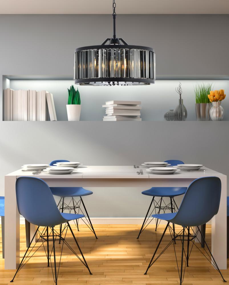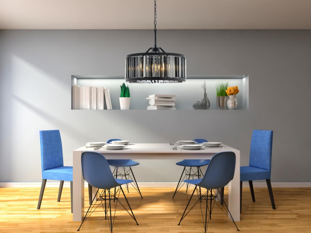 An infinity of light, caught in a circle of crystal bars in clear, golden teak, or Silver shade, the Chelsea collection will bring a shimmer of brilliance to your home. The circular steel frame in a Matte Black or polished-nickel finish lends subtle strength to this chandelier design. The Chelsea collection adds transitional grace especially to a kitchen, bedroom, or dining room.
