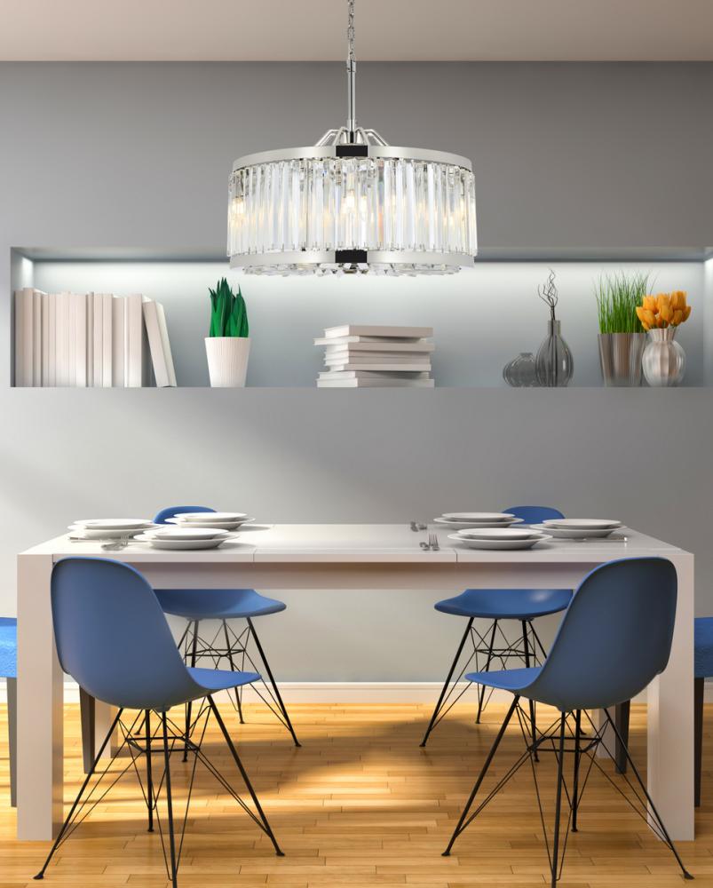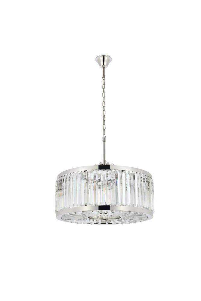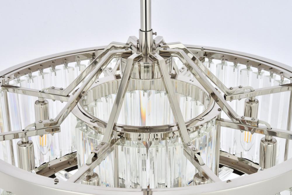 An infinity of light, caught in a circle of crystal bars in clear, golden teak, or Silver shade, the Chelsea collection will bring a shimmer of brilliance to your home. The circular steel frame in a mocha-brown or polished-nickel finish lends subtle strength to this chandelier design. The Chelsea collection adds transitional grace especially to a kitchen, bedroom, or dining room.