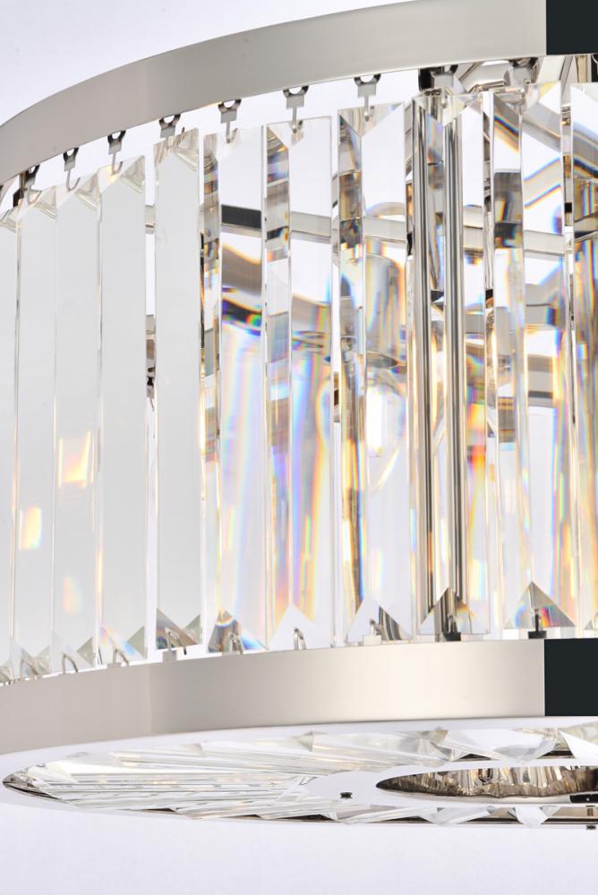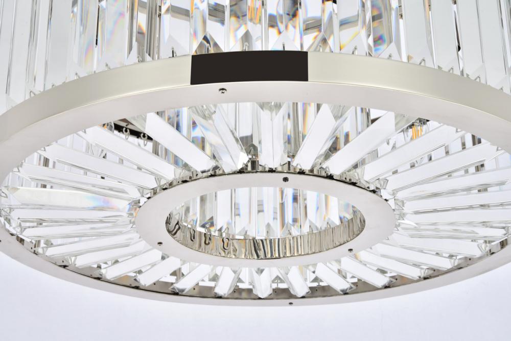 An infinity of light, caught in a circle of crystal bars in clear, golden teak, or Silver shade, the Chelsea collection will bring a shimmer of brilliance to your home. The circular steel frame in a mocha-brown or polished-nickel finish lends subtle strength to this chandelier design. The Chelsea collection adds transitional grace especially to a kitchen, bedroom, or dining room.