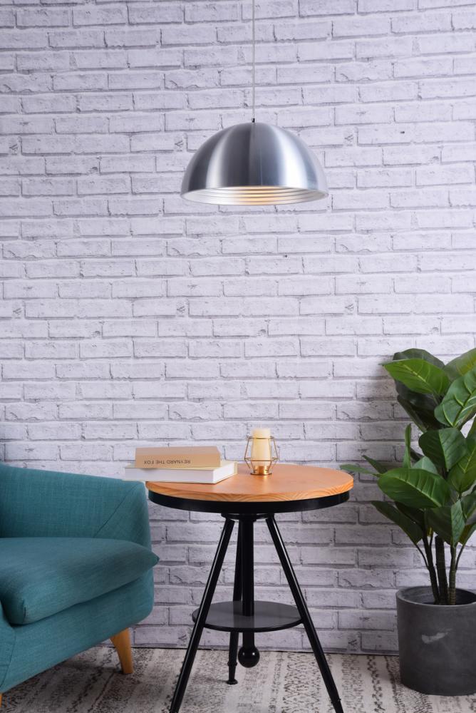 The burnished nickel aluminum finish shade easily adapts to any decor