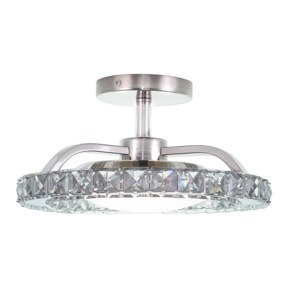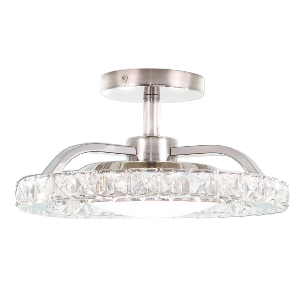 The Clara collection is the definition of contemporary glam. In this semi-flush mount, a brushed nickel finish accentuates the dramatic crystal ring. The ample LED light source creates an unexpected glow of beauty plus a bonus of reduced energy costs, no bulb changing convenience, and long-lasting performance. Add this stunning statement piece to any bedroom, hallway, kitchen, or other living space.