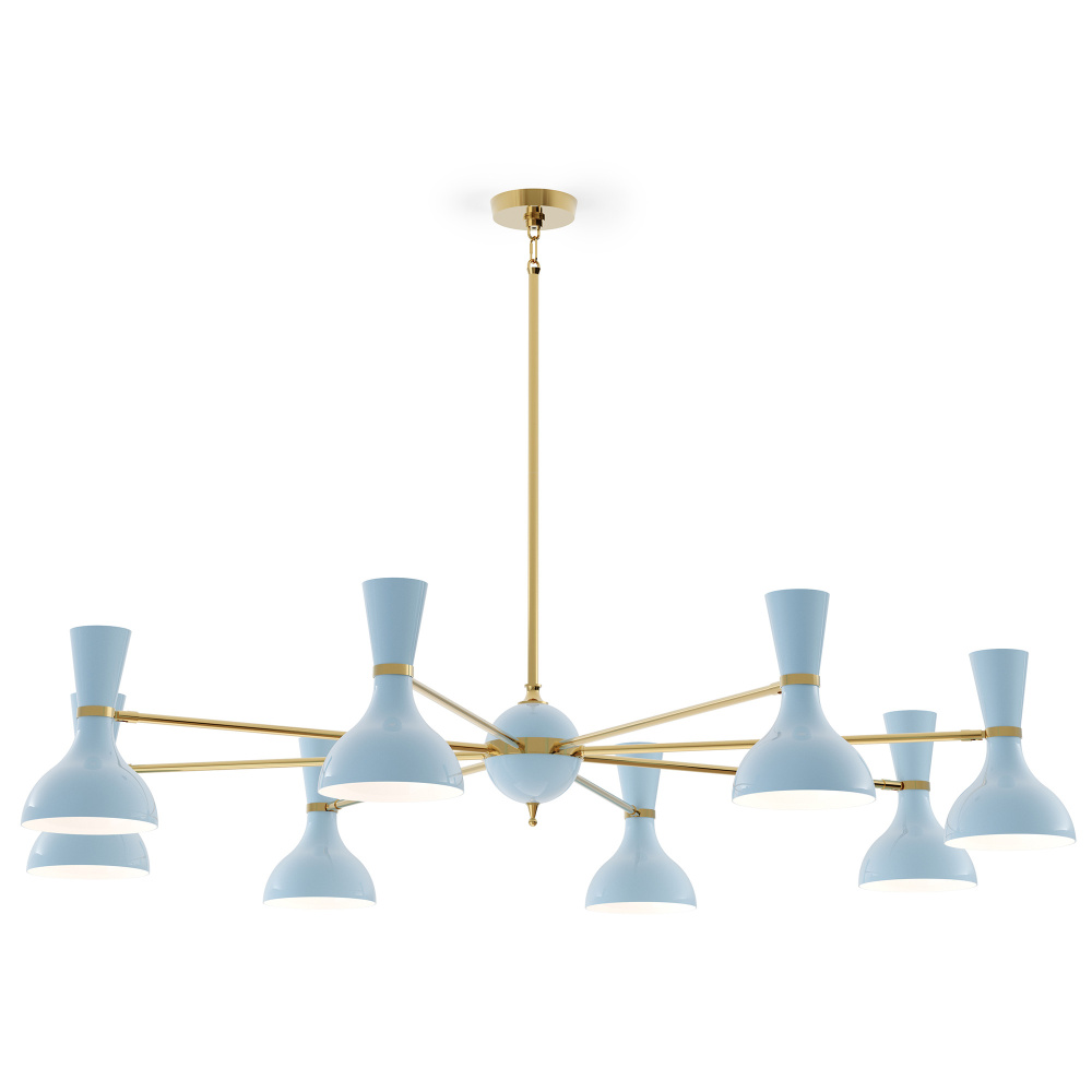 Modern Brass Chandelier w/ Baby Blue Painted Shade