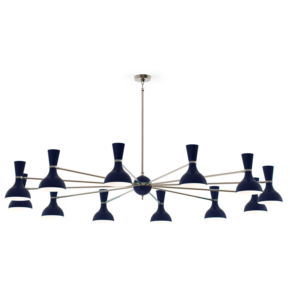 Polished Nickel Chandelier w/ Midnight Blue Painted Shade