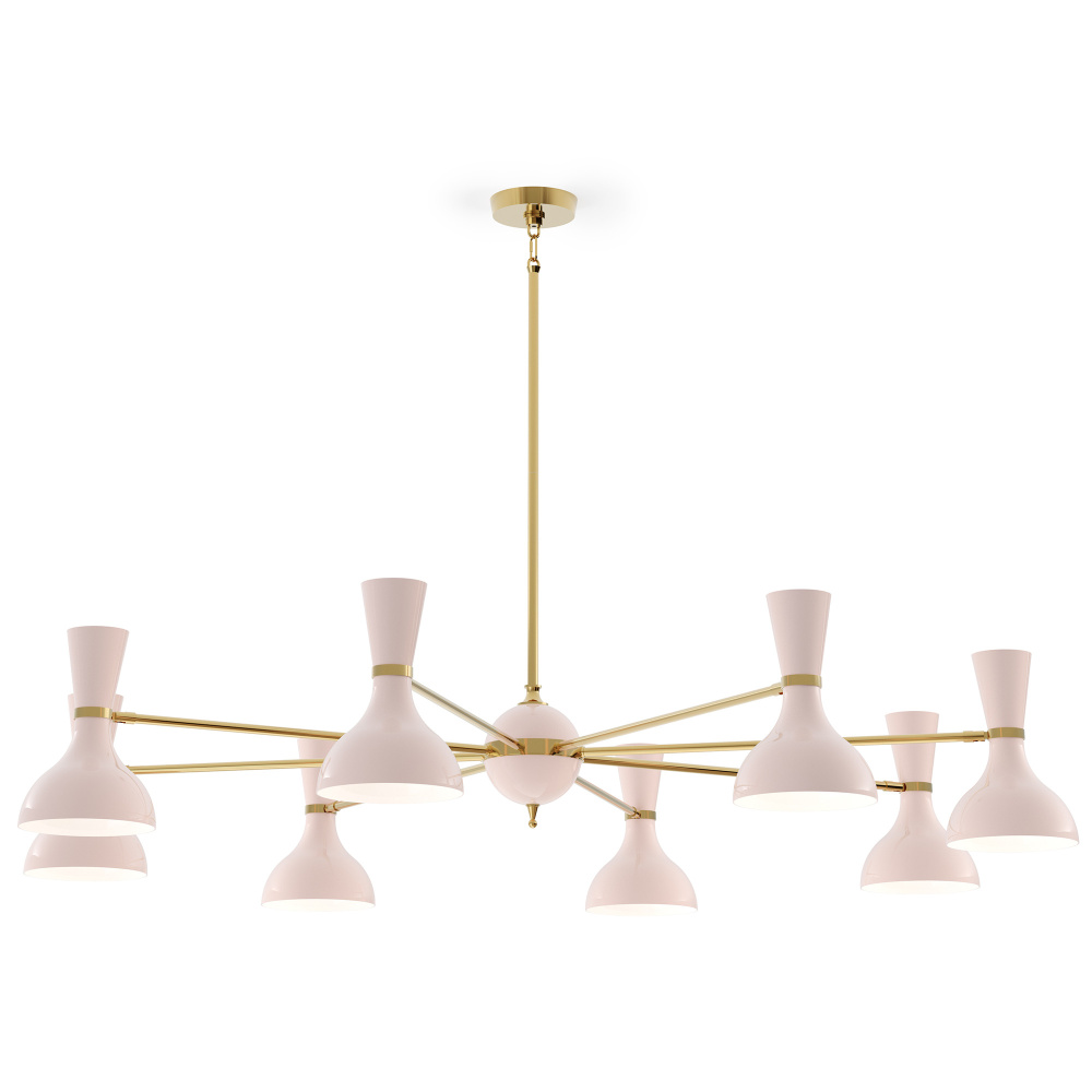 Modern Brass Chandelier w/ Rose Water Painted Shade