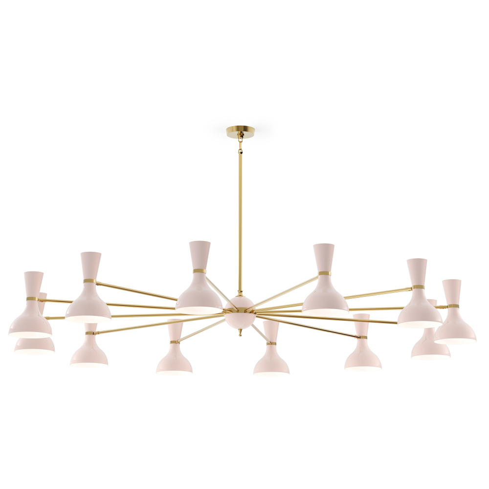Modern Brass Chandelier w/ Rose Water Painted Shade