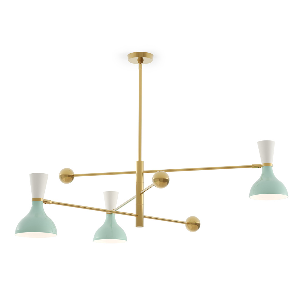 Modern Brass Pendant w/ Mint and Lily Painted Shade