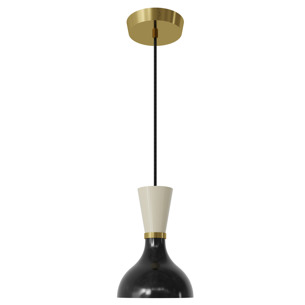 Modern Brass Pendant w/ Obsidian and Bone Painted Shade