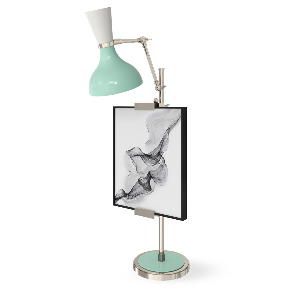 Polished Nickel Table Easel w/ Mint and Lily Painted Shade